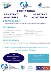 Ouverture formation Assistant Moniteur - Le Comité du Cher de Natation, avec l'ERFAN CVL, ouvre la formation Assistant Moniteur 1 et 2 pour cette saison sportive. Informations et inscriptions dans la plaquette jointe. |
